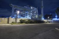 Los Angeles Industrial Building at Night with Lights