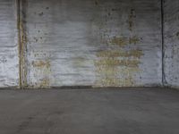an empty room with a very yellow and peeling paint on the wall and floor and a brick back