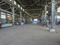 an empty industrial room with exposed ceiling and windows in the background is full of industrial equipment