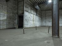 Industrial workshop in Los Angeles, California. Rugged room with cement walls and exposed pipes. Natural daylight streams through a small window, illuminating the open space. A perfect setting for creative endeavors in the heart of the city.