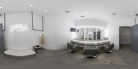 this is a view from a fish eye view of an individual's room with circular mirrors