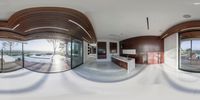 A modern apartment in Los Angeles, California with a circular living room offering panoramic views of the city. The open space design seamlessly connects the interior with the urban landscape. Enjoy the sunlight streaming in through the floor-to-ceiling windows.