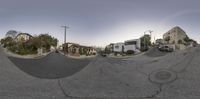 A straight view down a Los Angeles asphalt road, illuminated by suburban street lights. Clear skies frame this quintessential California night in a residential area, capturing a dark, yet serene urban cityscape.