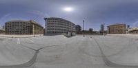 Open space cityscape in Los Angeles, California. Sunlit parking deck showcases classic architecture under a clear sky. Concrete surfaces and urban roads define the daytime scene, embodying the essence of an American urban landscape.