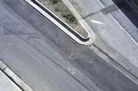an overhead shot of a street and the sidewalk taken from a top - up view