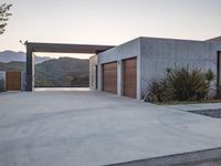 This is an image of a modern residential building in Los Angeles, California, USA. The concrete and asphalt surfaces of the driveway and road give the scene a contemporary feel. The clear sky above casts a shade over the villa's garden and backyard. The architecture of the house is sleek and in line with modern design principles. This photo represents the beauty of urban real estate in the heart of Los Angeles.
