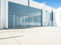 This is an image of an industrial warehouse building in the Art District of Los Angeles, California, USA. The building has a rugged and urban aesthetic, with a concrete facade and metal walls. The clear sky above contrasts with the industrial structure, creating an interesting visual composition. The spacious interior of the warehouse is suitable for a variety of uses, from office space to product storage. This photo represents the unique architecture and vibrant atmosphere of the city of Los Angeles.