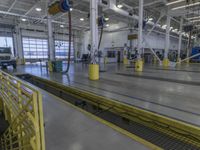 An industrial warehouse in Los Angeles, California. The open space and concrete surface make it perfect for a race track. The steel building and yellow barrier add an urban touch to the interior. A versatile space for any workshop or car dealer.