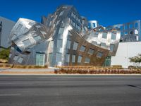A sculpture made of aluminum blocks with metallic squares adorning the sides. Located in the urban cityscape of Los Vegas, this architectural marvel stands tall against a clear sky. A testament to urban design in the USA.