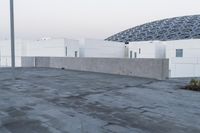 The stunning architecture of the Louvre in Abu Dhabi, UAE. The building features a unique facade and a beautiful open space. Clear sky and perfect road surfaces surround this iconic structure.