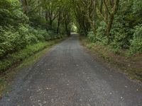 A scenic forest road with lush green vegetation on either side. The sunlight filtering through the trees creates a beautiful play of light and shadows. The straight road surface leads straight down into the forest, inviting exploration and adventure.