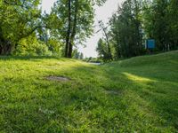This image captures a serene landscape in a lush forest. The open space is filled with green grass and several trees, creating a peaceful and natural environment. The sunlight filters through the branches, casting a warm shade over the grass surface. In the distance, a road surface leads to the land lot, adding a sense of exploration. This park-like setting offers a recreational space for visitors to enjoy the clear sky and soak up the sunshine. Incidental people can be seen in the background, adding a touch of human presence. A perfect depiction of a sunny day in nature.