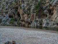 An open space in Majorca, Spain, showcasing a rugged landscape with rock walls and canyons. The dirt and gravel surface under the European sun create a natural, scenic setting.