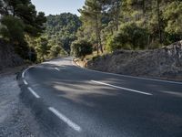 This is an image of an open space landscape in Mallorca, Spain. The photo captures a road with asphalt leading through the picturesque scenery of the Balearic Islands. It represents the beauty of nature in Europe, with the clear sky and lush vegetation. This photo showcases a typical day in Mallorca, where visitors can explore the stunning landscapes and enjoy the tranquility of the island. Experience the charm of the Balearic Islands with this breathtaking image.