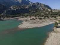 This is an aerial view image of Mallorca, one of the Balearic Islands in Spain. The picture captures the stunning landscape of the island, with its high mountains, clear blue coastal waters, and beautiful sandy beaches. The image also showcases the Mallorca reservoir, a water resource for the island. The open spaces and wilderness of Mallorca provide a serene and peaceful atmosphere, perfect for nature enthusiasts. With the clear sky above and the elevated mountain range in the background, this photo truly showcases the natural beauty of Mallorca.