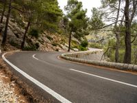 A beautiful scenic road in Mallorca, Spain. The asphalt road winds through the landscape on a sunny day. The surrounding nature is vibrant, with fluffy white clouds in the clear blue sky. The road curves gracefully, forming an S-curve, with an Armco barrier ensuring safety. This stunning road is located on the picturesque island of Mallorca in the Balearic Islands, Europe.