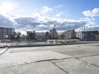 This stock photo features a man standing on a city waterfront in Berlin, Germany. Behind him are tall buildings showcasing modern architecture. A person can be seen walking away from the others. The image captures a lively urban scene with an open space, trees, and a river. The cityscape showcases a mix of classic and modern architecture. The shot was taken during the day with clear blue skies and clouds. The location is part of a metropolitan area with a vibrant public space and urban design. A pier and jetty are visible, adding to the city's charm. The image represents city life, sunshine, and the vibrant atmosphere of Berlin, Europe.