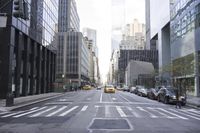 This aerial photo captures the bustling city streets of Manhattan, New York. The cityscape showcases the iconic classic architecture and the metropolitan area's vibrant urban life. A straight road, lined with yellow taxis, cuts through the heart of the town, leading towards downtown. The asphalt streets, crosswalks, and lanes demonstrate the well-planned infrastructure of this metropolis. From up above, you can see the busy thoroughfares and the constant movement of people and vehicles. This image represents the energetic atmosphere and the charm of New York City.