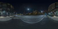 the empty street is shown at night and the streets are empty in view of the sky