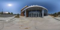 this is a fisheye panoramic photo taken at an open air stadium, showing the entrance and the stairs