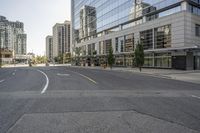 This is an image of a cityscape in Toronto, Ontario, Canada. The photo is taken from a high vantage point, capturing the modern architecture and residential areas. The straight road down the center leads into the bustling metropolitan area. The clear sky and the break of day give a sense of dawn. The image showcases the urban design and city life in Toronto. This vibrant and thriving city is a hub of activity and human settlement. The condominiums and straight lanes on the thoroughfare represent the modern and urban lifestyle of Toronto.