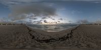 the image shows the sun shining down at the ocean as seen through a 360 - view lens