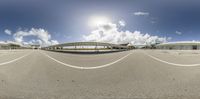 the view of an airport building, as seen through a fish eye lens as viewed in google image