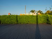 This is an image of a wooden fence near a house in Miami Beach, Florida, USA. The photo was taken during dawn, capturing the break of day. The cloudy sky adds to the atmospheric feel of the picture. The focus is on the wooden floor, showcasing the beautiful texture and patterns. The empty space and absence of people give a sense of tranquility. In the background, other houses can be seen, completing the scene. This photo represents a quiet and peaceful morning in Miami Beach.