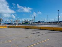 This image captures the coastal scenery of Miami Beach, Florida. The view showcases a clean and empty parking lot with trucks parked in the background. The blue sky above complements the coastline and the ocean that stretches out into the distance. The pier and jetty stand as a prominent feature of the harbor, adding to the overall charm of Miami. As the day progresses, the cheerful atmosphere of this vibrant city becomes evident. This photo showcases the perfect surface of the asphalt and the stunning coastal landscape, making it a striking representation of Miami Beach.