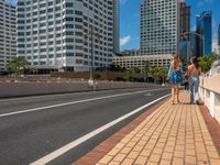 Modern architecture and urban design in the bustling business district of Miami. Office buildings line the roads of this vibrant cityscape under a clear blue sky. A quintessential day in Miami Beach.