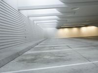 This image captures the modern architecture of an empty parking garage in Milwaukee, Wisconsin. The sleek lines and open spaces reflect the urban design of the city. The concrete blocks on the walls and ceilings give a futuristic feel to the structure. In the foreground, a black fire hydrant adds a pop of color against the neutral tones. This photo represents the dawn of a new day in Milwaukee, showcasing the city's unique blend of modern and structural elements.