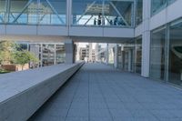 the empty concrete benches in the courtyard of an office building are empty, and no one was allowed in