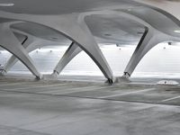 A futuristic parking garage in Milwaukee, Wisconsin. The modern architecture and design feature composite material floors and metal ceilings. The open spaces and urban lines create a striking structural element in the city.