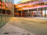 This image showcases the modern architecture and urban design of a city in the Netherlands. The multicolored buildings in the business district contrast with the clear sky above. The facade of the office building features large windows and shades, creating a visually striking appearance. The road surface and asphalt lead into the city, providing access to the mixed-use buildings and open spaces. This photo represents the vibrant and dynamic atmosphere of the European business district in the Netherlands.
