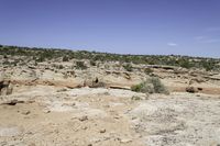 This image showcases the rugged and breathtaking landscape of the desert in Utah, USA. The photo captures the red rocks, towering mountains, and vast open spaces that define the region. The clear sky and lack of vegetation highlight the raw beauty of the area. Gravel and dirt roads wind through the canyons, exposing the unique geological formations and archaeological sites. The erosion and aeolian landforms have created stunning cliffs and outcrops. This picture encapsulates the essence of Moab, Utah, and its awe-inspiring natural wonders.