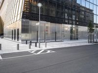 A modern architecture building in Berlin, Germany. The glass facade reflects the vibrant city life. The mixed-use neighborhood features office buildings and condominiums. This urban design embodies the futuristic architecture of Europe's financial district.