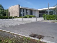 A clear day in Berlin, Germany showcasing the modern architecture of the city. The streets are lined with cobblestones and asphalt, leading to various office buildings, university campuses, and museums. The financial district is also a prominent feature in this bustling European business district.