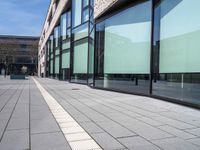 Bremen's modern architecture shines under a clear sky. Glass buildings line the empty sidewalks, creating an urban business district. The city's open spaces and urban design offer a glimpse into European city life.