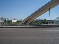 A modern urban bridge in Zaragoza, Spain, lined with sleek architecture. The clear sky highlights the city's urban design and the bustling city life below. Explore the streets of this vibrant European city.