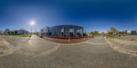 an image of this is a 360 - angle view of a building in the middle of the street