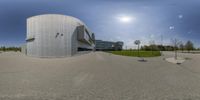 A modern architecture building in Toronto, Canada, with a parking lot in the front. The clear sky and sunny day accentuate the sleek design. The surrounding urban neighborhood adds to the vibrant atmosphere.