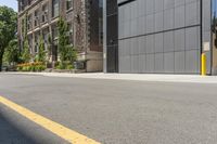 A modern architecture building in a residential area of Toronto. The yellow lines on the road surface add to the urban design. This property showcases the vibrant city life of Toronto.