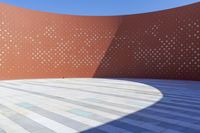 This stock photo features a modern architecture building located in Suzhou, China. The building is very big and has lots of dots on it, giving it a unique pattern and design. The clear blue sky and open spaces around the building create a beautiful urban landscape. The futuristic architecture and metal walls add a touch of modernity to the city's profile. This architectural structure stands out in the cityscape and showcases the urban design of Suzhou. The natural environment, including trees and dunes, adds to the aesthetic appeal of the building. This stock photo is perfect for illustrating concepts related to architecture, urban life, and innovative design.