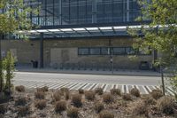 A modern architecture building in Toronto's business district. The brownstone facade and brick structure blend seamlessly with the urban design. The office building stands tall against the backdrop of trees and vegetation.