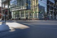This stunning stock photo captures the beauty of modern architecture and city life in Montreal, Quebec, Canada. The image showcases a vibrant cityscape with a mix of office buildings, shops, and storefronts. The photograph was taken during the day, highlighting the intricate details of the local architectural designs. The roads and lanes are adorned with asphalt, creating a smooth and well-designed infrastructure. Pedestrians can be seen crossing the streets on well-marked crosswalks, adding to the urban charm of the neighborhood. The reflection of the buildings and the hard shadows adds depth to the composition. A perfect image for showcasing the bustling city life and the architectural wonders of Montreal.