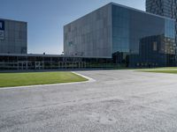This photo captures the modern architecture of a large grey office building in Holland, Netherlands. The building stands in a parking lot surrounded by grass and a tree trunk. The clear sky provides a backdrop for the city life and urban design of this business district. The road surface and asphalt contrast with the greenery, highlighting the urban landscape. This image represents the blend of European aesthetics and contemporary urban design. Experience the vibrant city atmosphere and the captivating architecture in Holland, Netherlands.