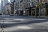 This image captures a modern architecture in the city of Toronto, Ontario, Canada. The photo shows a clear sky and a deserted street, with no traffic in sight. The reflection of the buildings can be seen on the asphalt road surface. The urban design and infrastructure of the city are highlighted, as well as the sleek facades of the buildings. This photo represents a peaceful day in the vibrant city of Toronto, with its lively city life and well-planned urban layout.