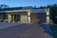 This stock photo showcases a stunning modern architecture with a clear sky and artificial light at dawn in Toronto, Canada. The building features a sleek facade, gas station, and a paved driveway leading to a spacious parking lot. The image captures the beauty of the architecture in the early morning light, creating a serene and peaceful atmosphere. It is perfect for illustrating concepts related to real estate, office buildings, residential areas, and business districts.