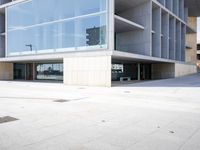 This image showcases the modern architecture of a corporate headquarters in Spain. The building features a sleek facade with large glass windows, allowing the sunlight to create shadows on the surface. The open space in front of the building serves as a plaza or courtyard, providing a peaceful urban escape. Located in a business district, this office building is a prominent fixture in the city. The architecture reflects the contemporary style of Europe and the Balearic Islands. This photo captures the essence of a sunny day in Spain's bustling business environment.