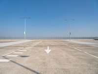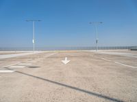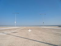 This is an image of a modern architecture in Holland, Netherlands. The city landscape shows a road with asphalt surface and composite material along with a parking deck and parking lot. The clear sky above contrasts with the concrete street and the street lights that provide light during the day. The open space and land lot provide a spacious and unobstructed view. This photo represents the modern architecture and infrastructure of Holland.